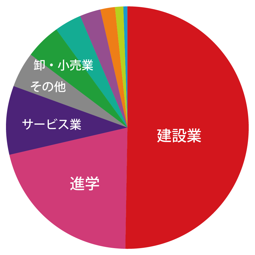 建設会社、住宅メーカー、建材メーカー、建築設備会社、設計事務所(意匠・構造・設備)、インテリアデザイン事務所、不動産会社、 官公庁、進学、など。