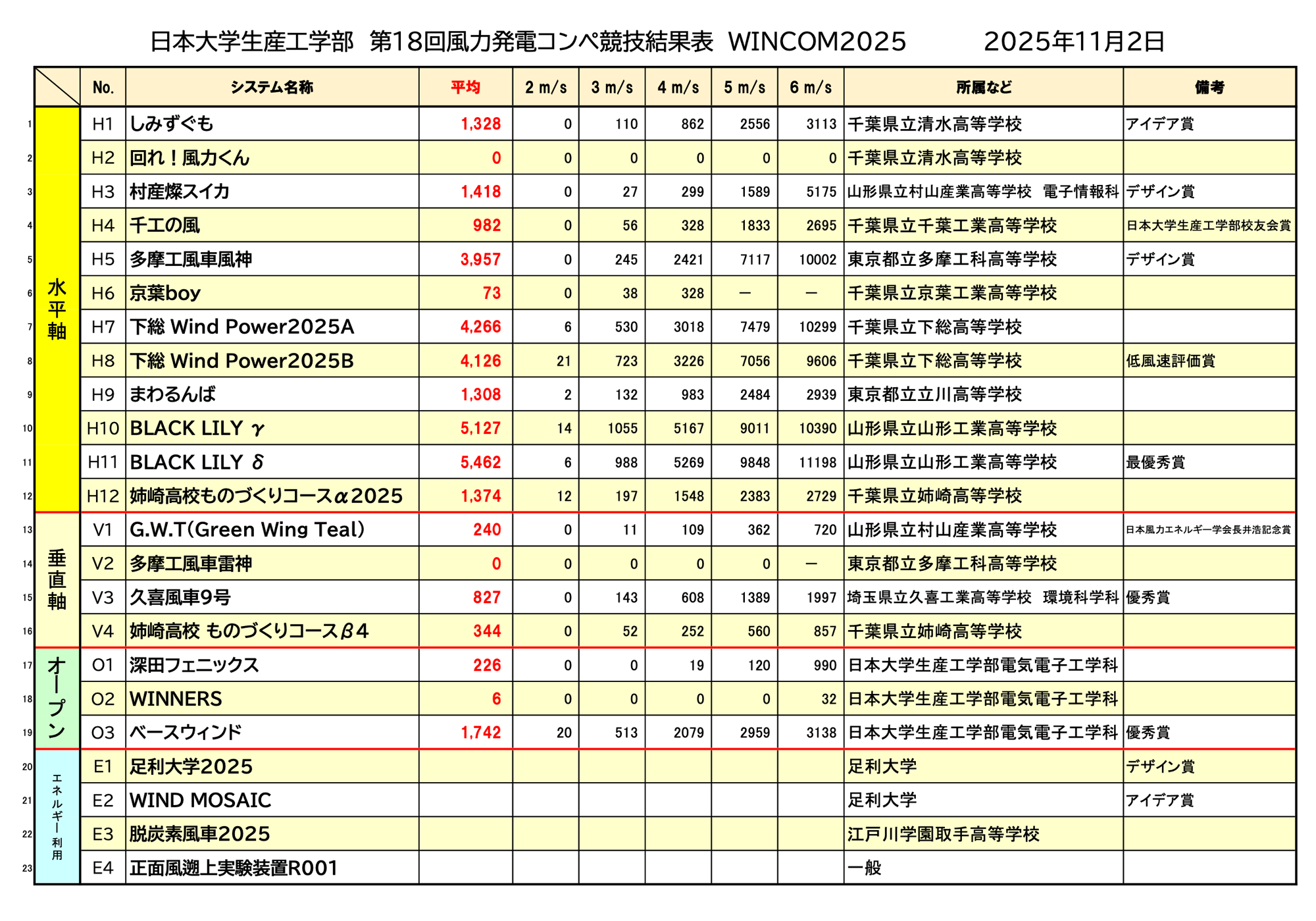第18回風力発電コンペWINCOM2025表彰は無事終了致しました。参加者の皆さまありがとうございました。