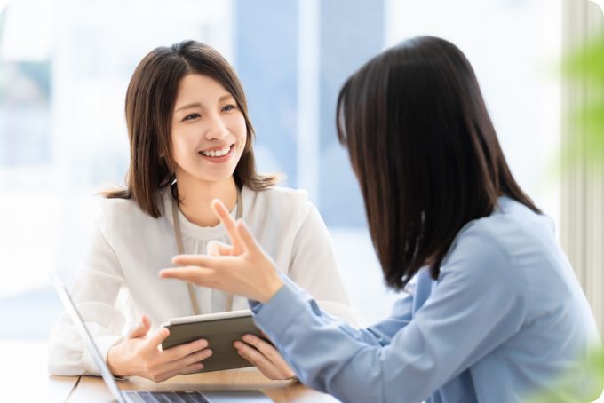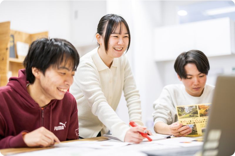 アカデミックアドバイザールームには女性の学生メンターがいます。レポートや課題、就活について気軽に相談できる環境があります!