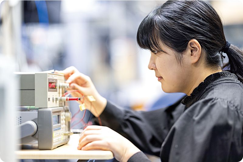 工学系の学びには実験や実習などアクティブな活動がたくさんあります。そんなときも女性専用の更衣室やパウダールームがあるから安心!