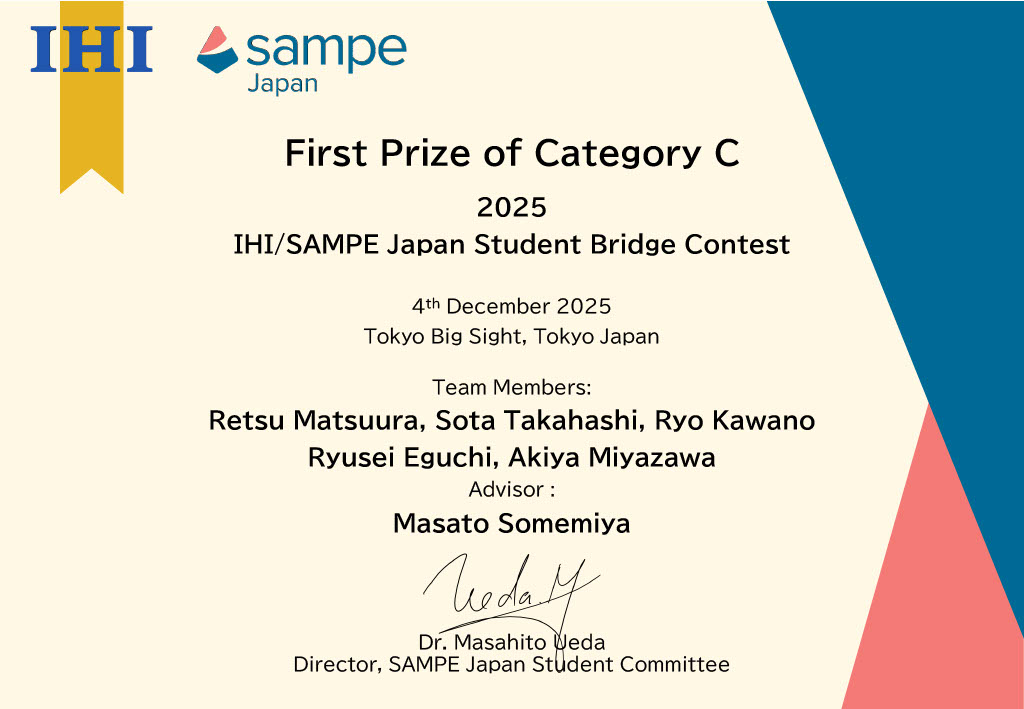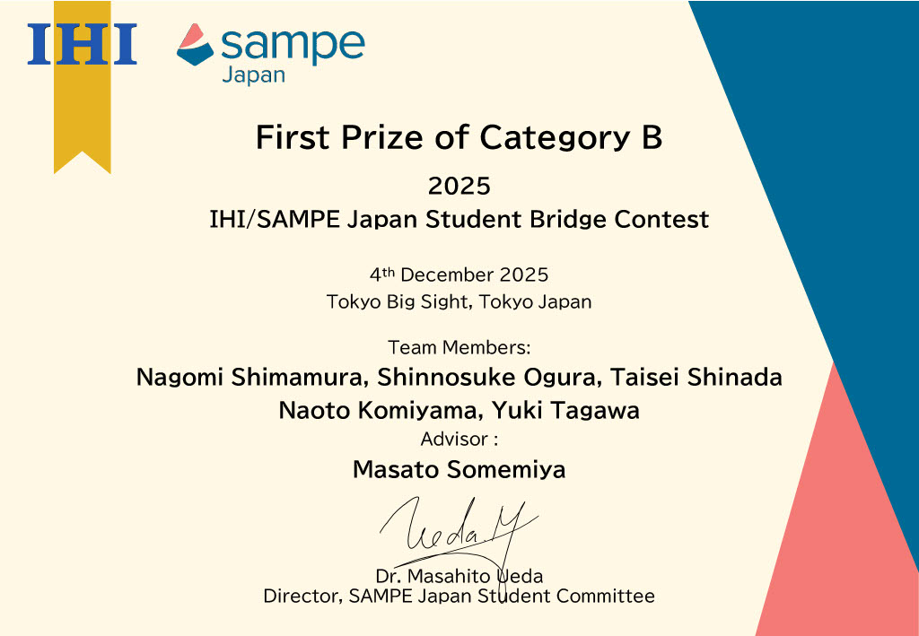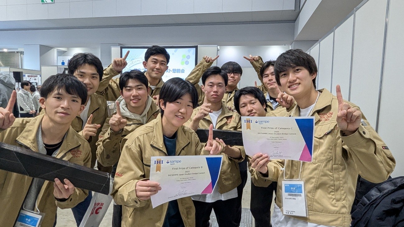 12月4日(木)に東京ビックサイトで開催された2025 IHI/SAMPE Japan学生ブリッジコンテストで,平山・染宮研究室の学生チームが2つの部門で